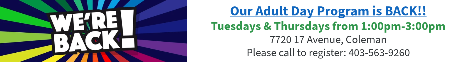 “We want to thank Cartwright Cares for the great service you are providing us and the Crowsnest Pass. Joe has been going to your Adult Day Program two times a week, and so far, he has enjoyed activities such as yard and table games, putting together puzzles, painting, crafts, and sing-alongs—all geared to his interests and abilities. Joe loves to socialize, and the staff are genuinely friendly and caring.